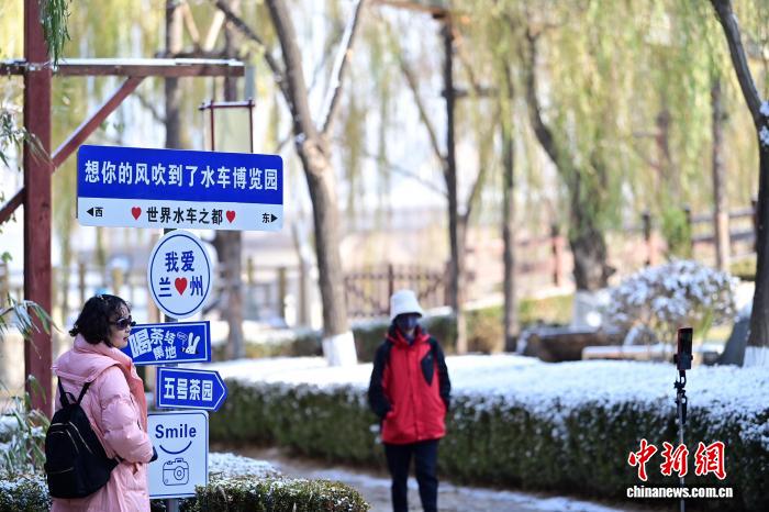 11月24日,苦肃兰州迎去古冬尾场落雪。图为市平易近雪后正在兰州火车专览园挨卡摄影。中新社记者 9好旦删 摄
